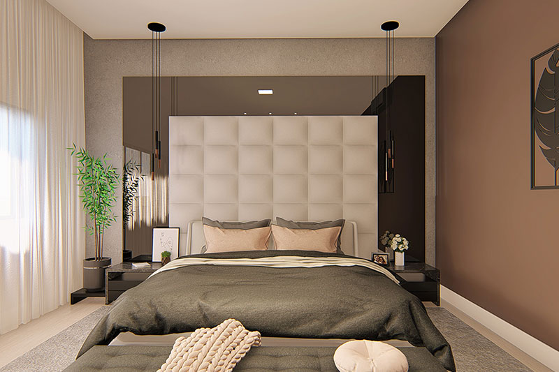 A casa possui quatro suítes espaçosas, todas equipadas com closet, garantindo privacidade e organização. A suíte master é um verdadeiro destaque, com um closet amplo, banheiro luxuoso com duas cubas, dois chuveiros e banheira, além de acesso direto a um jardim privativo. As demais suítes também são bem dimensionadas e oferecem todo o conforto necessário, cada uma com seus próprios banheiros.