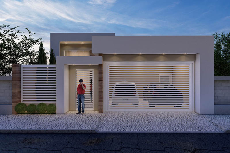 Planta de casa moderna com portão . Planta para terreno 10x25